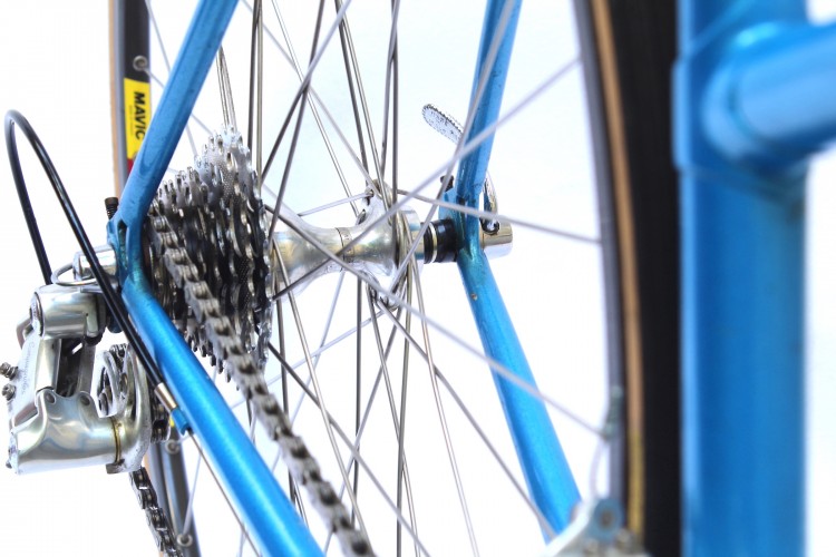 Zu datieren ist das Fahrrad Anfang der 90er Jahre. Ausgestattet ist es mit einem Campagnolo C-Record Teile und den ersten ErgoPower Schalt-/Bremsgriffen von Campagnolo.