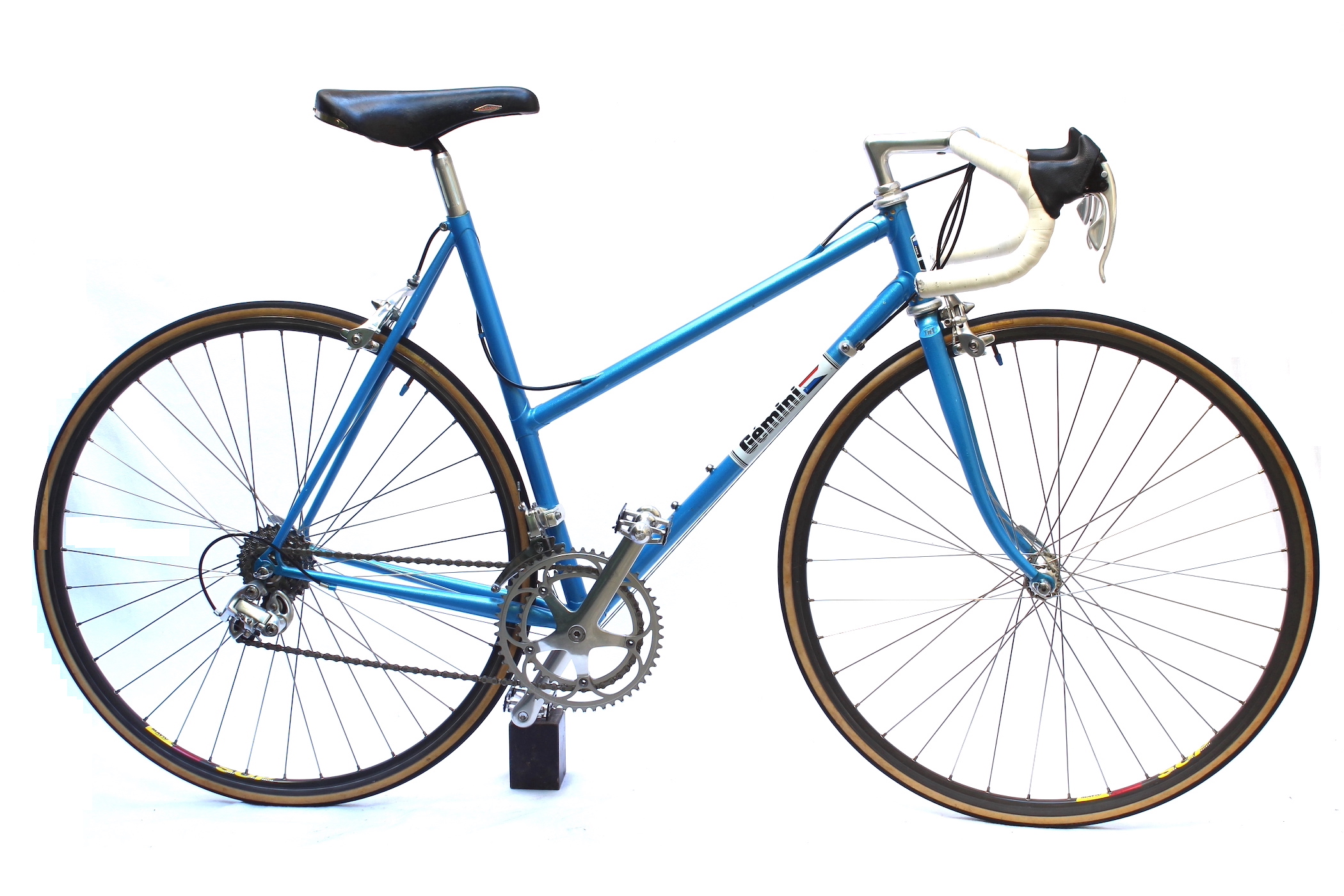 In unserem Fall wurde der Rahmen von A. Michel (und nicht Henri Depierre oder seinem Sohn) gebaut. Wie auch immer, ein Gemini Rennrad kommt aus einem feinen Stahl. Das Fahrrad ist weitestgehend im Originalzustand. Das Damenrennrad bekommen Sie hier im typischen Gemini blau.